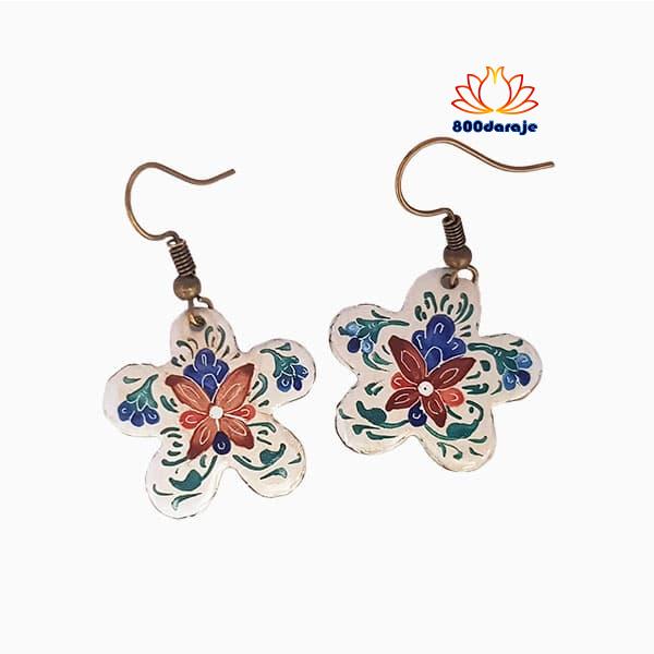 گوشواره میناکاری دست ساز و دارای طرح های متفاوتی از لحاظ ظاهر و سایز پلاک می باشد. کلیه نقوش روی این گوشواره ها با دست کشیده شده است. روی این گوشواره های زیبا طرح ختایی با مهارت و دقت بسیار بالا و با ظرافت خاصی کار شده است که زیبایی آن را چند برابر می کند و آویز گوشواره میناکاری گل 5 پر از جنس برنج است. سبک پخت زیورآلات میناکاری با دمای 800 درجه سانتیگراد باعث شده است رنگ و لعاب مینا طوری به مس بچسبد که دیگر با هیچ تیزی قابل جدا سازی نباشد. برای رنگ آمیزی این گوشواره های زیبا از رنگ های میناکاری که اکسید فلزات است، استفاده شده است که بر مرغوبیت و کیفیت محصول می افزاید.