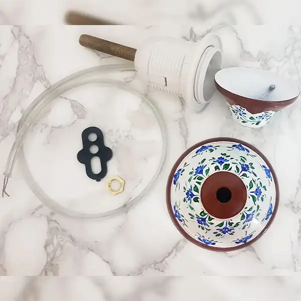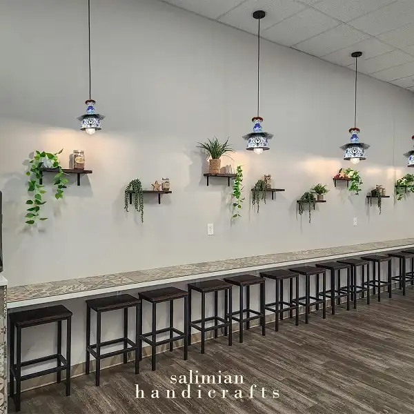 لوستر مینا کاری شده با طرح‌های سنتی اسلیمی ختایی و رنگ‌های جذاب، دکوراسیونی اصیل و هنری به فضاهای مختلف می‌بخشد.