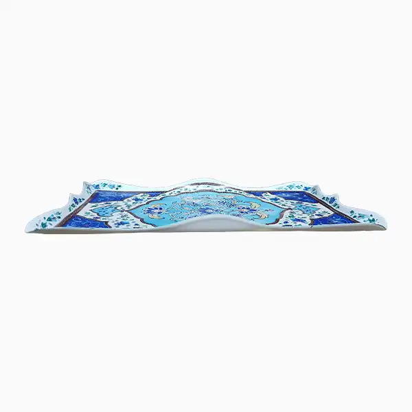 این ظرف میناکاری مستطیل شکل می‌تواند برای قرار دادن خوراکی‌ها مثل رولت خامه‌ای، کیک یا بیسکوییت بسیار مناسب باشد. در مهمانی‌ها می‌توانید از آن برای پذیرایی استفاده کنید یا برای چای و قهوه‌خوری، قندان و فنجان را روی آن قرار دهید. طراحی میناکاری مسی، علاوه بر زیبایی، باعث می‌شود این سینی به‌عنوان یک وسیله تزئینی نیز کاربرد داشته باشد.