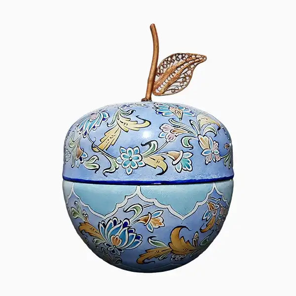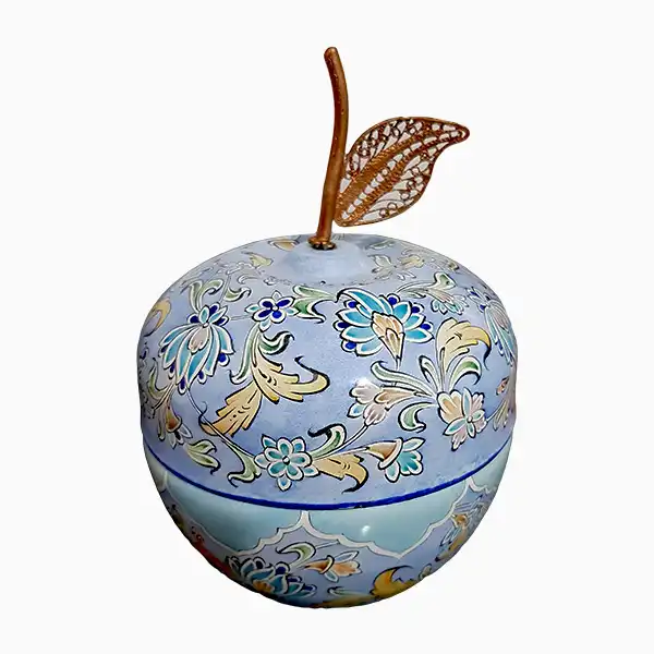 خانه ظروف میناکاری قندان میناکاری قندان میناکاری اصفهان طرح سیب