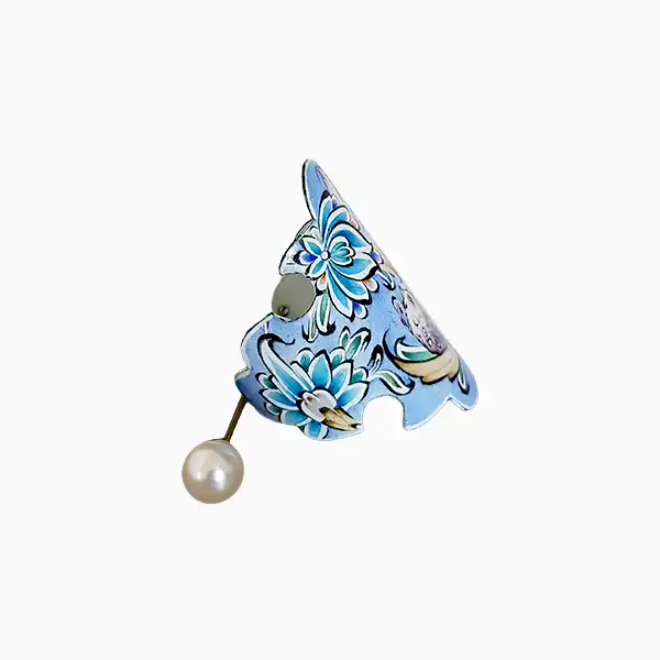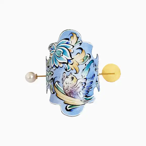 گیره مو مینا کاری ژاپنی با الهام از سبک سنتی ژاپنی و تکنیک میناکاری اصفهان ساخته شده است. ترکیب رنگ لاجورد و فیروزه در کنار بدنه لعاب دار سفید، باعث میشود زیبایی طبیعی موها بیشتر دیده شود. این گیره مو برای موهای بلند و نیمهبسته مناسب است و ظاهر آن بهگونهای طراحی شده که با استایلهای رسمی و روزمره هماهنگ باشد.