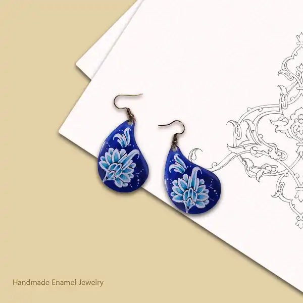 ویژگیهای گوشواره میناکاری اشکی با نقش گل پنبه ای: