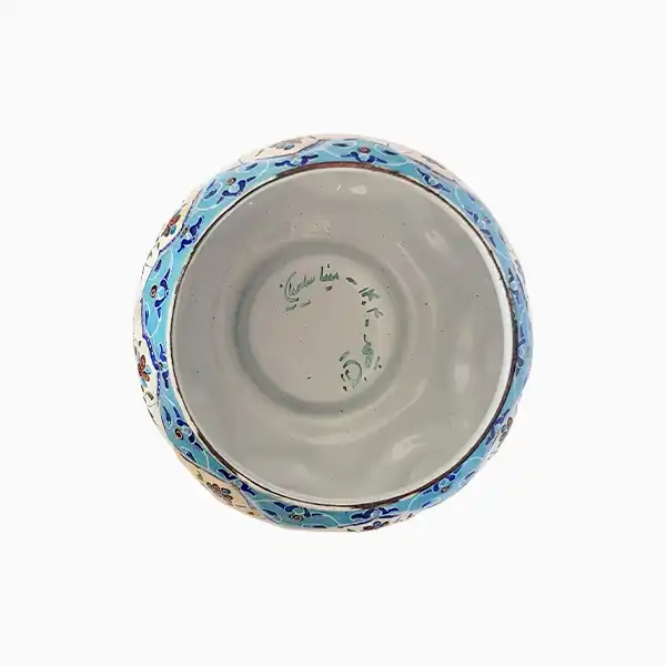 قندان میناکاری فیروزه ای طرح شاه عباسی ؛ ساخته شده روی بدنه مسی. مناسب برای نگهداری قند و شکلات. مشاهده قیمت قندان میناکاری اصفهان.
